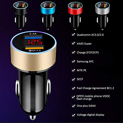 Greenwoodhomer - Caricabatteria da auto con doppio display digitale USB, per auto e accendisigari portatile con display a LED