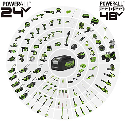 UTILIZZABILE CON 2 QUALSIASI BATTERIE GREENWORKS DA 24V A 2Ah O 4Ah - confezione 'solo attrezzo' fornita senza batterie per il doppio alloggiamento, così se già possiedi apparecchi Greenworks da 24V puoi utilizzare le stesse batterie riducendo gli sprechi