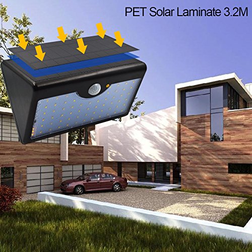GreeSuit - Luci solari a LED da giardino, 60 LED, super luminose, wireless, impermeabili, con telecomando, per patio, terrazza, cortile, giardino, vialetto, parete esterna