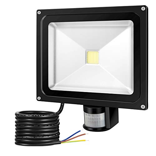 GREESUN Faretto LED con sensore di movimento 30W, 2700LM IP65 Proiettore LED esterno, Faro led esterni, illuminazione bianco freddo 6000K, Lampada LED a basso consumo ene, 3 anni di garanzia