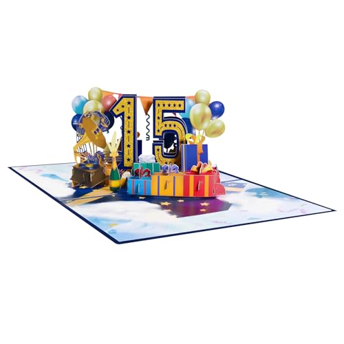 Perfetto come biglietto e regalo per il 15° Compleanno】: il biglietto di compleanno 3D pop up 3D è realizzato su misura per l'invio di auguri di compleanno. Sii il primo a augurare qualcosa ai tuoi amici e familiari in questo momento allegro. La vista di questo biglietto pop up garantisce una grande sorpresa e ricorda al destinatario che è giunto il momento di festeggiare il suo 15° compleanno