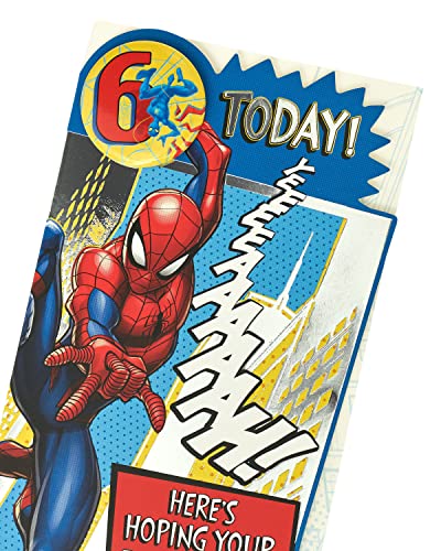 UK Greetings Marvel - Biglietto di auguri per 6° compleanno per lui/ragazzo con busta, design distintivo, con Spider-Man, 121 mm x 229 mm