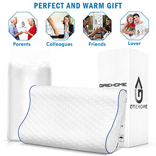 Grehome, cuscino in memory foam, cuscino ortopedico ergonomico per cervicale per sollievo dal dolore a collo, spalle e schiena, supina, precario, con fodera lavabile e traspirante, Memoria di forma, 25 x 16 x 4.7/3.5 inch