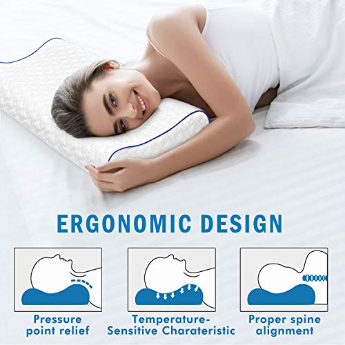 ★ Design unico sagomato: le dimensioni sono (40,6 x 63,5 x 12,9 cm). Appositamente progettato con 2 diverse dimensioni per il supporto del collo, che si adatta alla curva naturale del corpo e sostiene la testa e il collo per garantire un comfort superiore. Favorisce il corretto allineamento della colonna vertebrale e aiuta i muscoli a rilassarsi e riduce il dolore a collo, schiena e spalle. Se siete supini, inclini a dormire, avrete il supporto di cui avete bisogno.