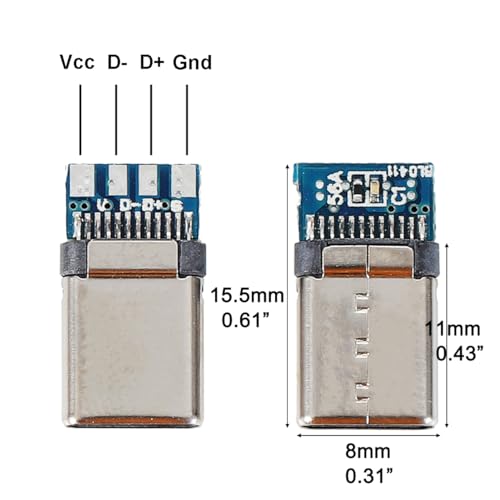 Greluma 15 Pz Connettore maschio USB 2.0 tipo C con custodia, tipo di saldatura a 4 pin 6V 2A per ricarica e trasmissione dati