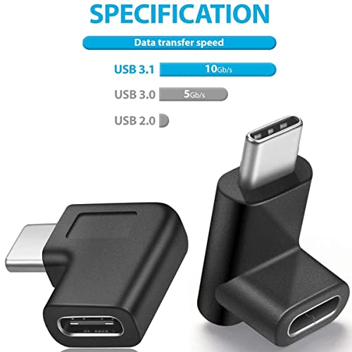 Greluma 2 pz 90 gradi USB tipo C adattatore maschio femmina, angolato verso l'alto e verso il basso, angolato a destra e sinistra USB-C USB 3.1 Type-C estensione per tablet telefono cellulare laptop