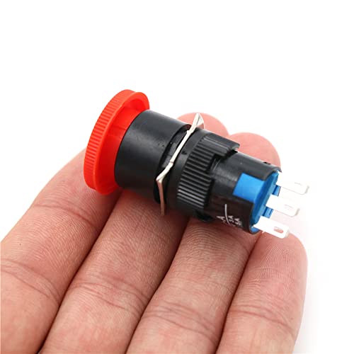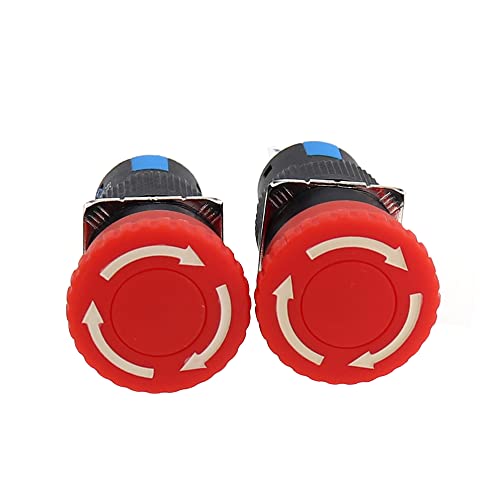 Greluma 2 Pcs Interruttore a pulsante di arresto di emergenza a fungo rosso da 16 mm 250V 3A con 1 NC/1 NO