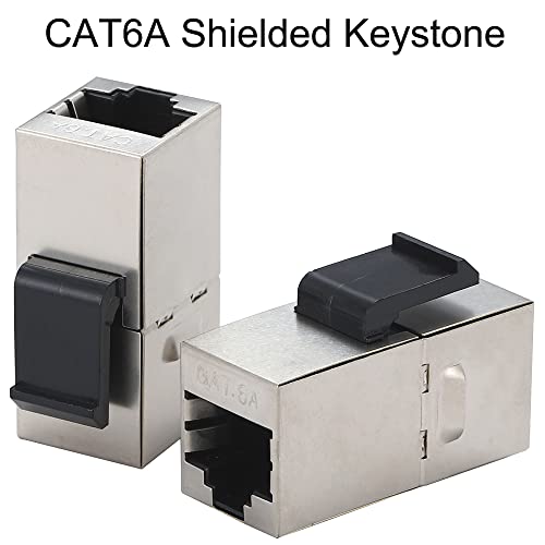 Greluma 6 pezzi CAT6A keystone jacks, accoppiatori RJ45 femmina a femmina diritto schermato in linea cavo CAT6A modulo Ethernet di rete (colore argento)