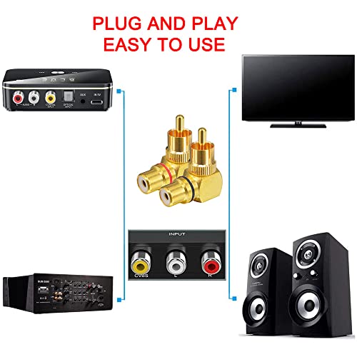 Greluma 2 pezzi convertitore adattatore RCA maschio a femmina ad angolo retto, 90 gradi, 1 rosso e 1 nero