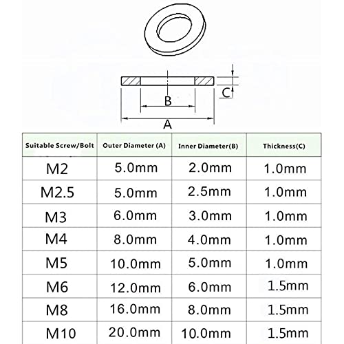 Necessario comune quotidiano:questa scatola assortita di rondelle distanziali rotonde contiene 500 pezzi/8 dimensioni popolari che le dimensioni più comuni e comuni-M2 M2,5 M3 M4 M5 M6 M8 M10