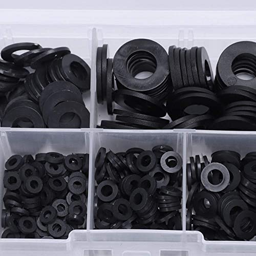 Greluma 500 Pezzi M2 M2.5 M3 M4 M5 M6 M8 M10 Rondella in Plastica Rondella Piatta in Nylon Kit Assortimento,Nero