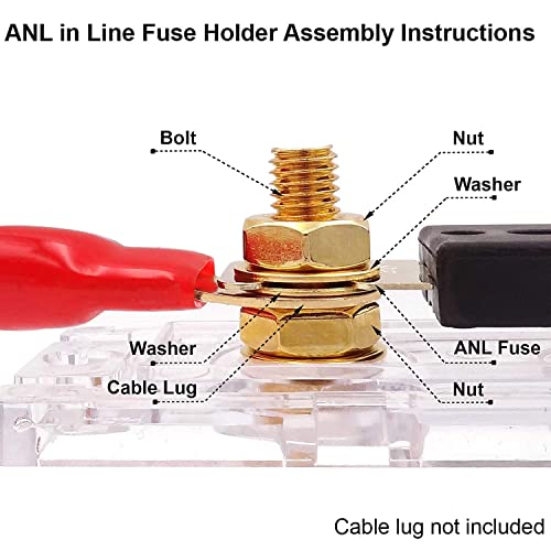 Greluma 2 Pz Portafusibile ANL in linea AWG calibro 0/2/4 con fusibile ANL da 200 A