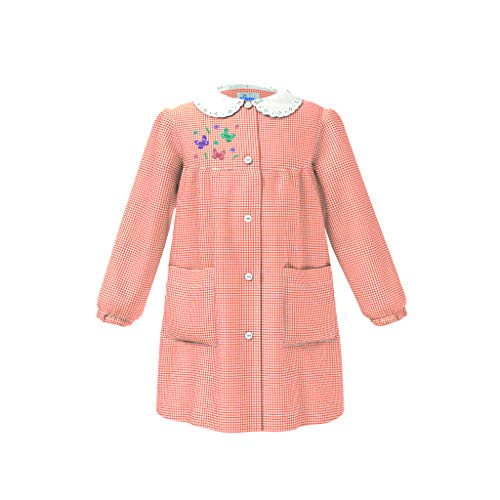 Grembiule bambina scuola dell'infanzia, bottoni, quadretto verde/bianco - arancio/bianco (quadretto arancio/bianco, 55-4 anni - 104 cm)