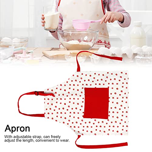 Grembiule per bambini, stampa fragola rossa con cinturino regolabile e tasca frontale per la cottura al giardinaggio, Rosso