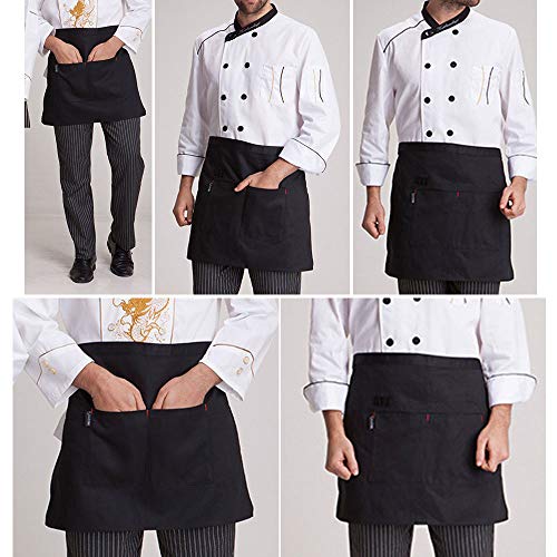 JNCH (64 * 40cm) 2pz Grembiule da Cucina Corto Cuoco con Tasche Chef Cameriere Donna Uomo Bar Ristorante Nero