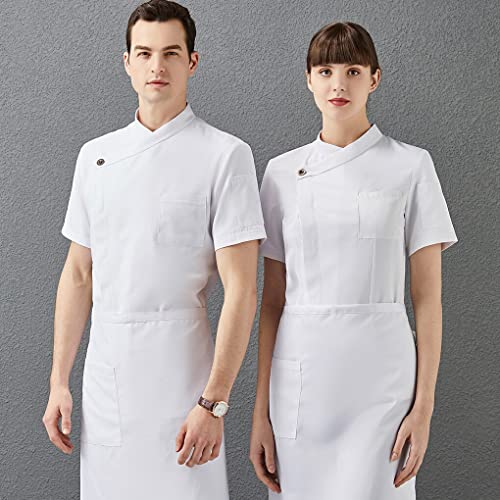 Grembiule da cucina a maniche corte in poliestere uniforme da cuoco con tasche frontali Abiti per la casa per ristorante Bianco XL, bianco, m