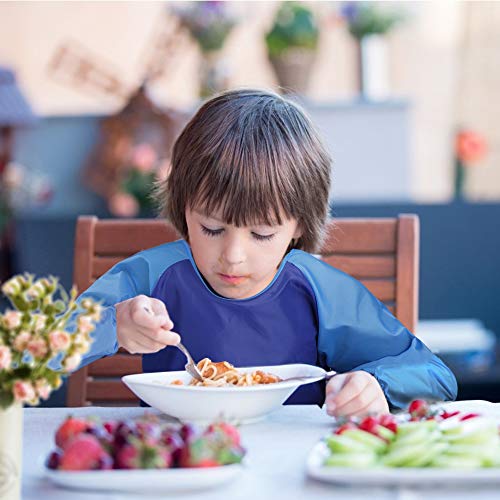 Grembiule da Pittura Bambini Grembiulino Impermeabile Maniche Lunghe per Bambini 3-7 Anni con 3 Tasche per Pittura, Artigianato, Argilla, Cucina (4 Pezzi)