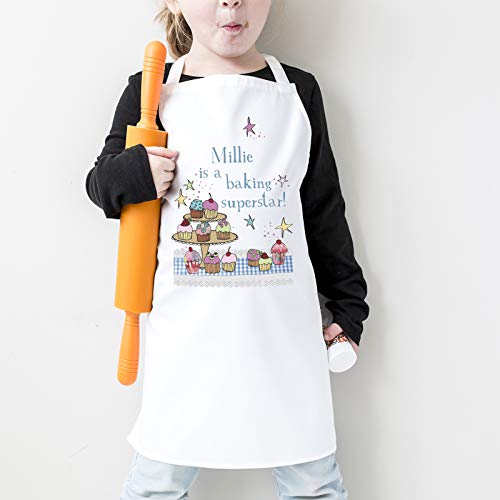 Grembiule con scritta in inglese “... is a baking superstar” personalizzabile, idea regalo divertente per tutte le età, White, 3-5 years 45cm x 37cm