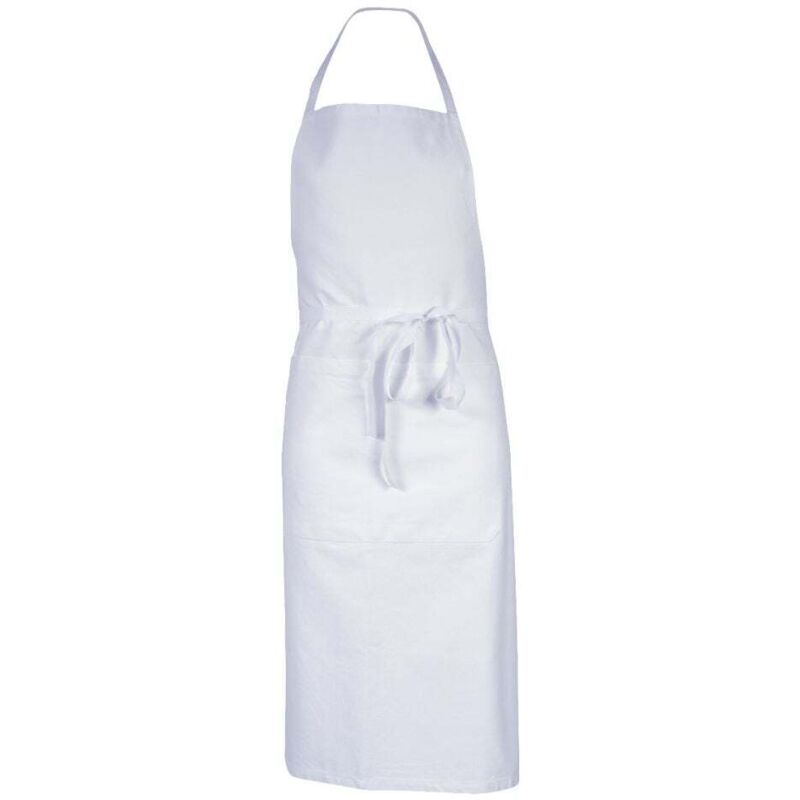 Caratteristiche: Grembiule con pettorina Lunghezza del collo: 60 cm Grande tasca centrale Cintura in pizzo intrecciato Altezza: 100 cm Larghezza: 105 cm Lunghezza cintura: 100 cm Materiali: Tieni presente che la composizione varia in base ai colori: Nero: 100% cotone - 245 g/m² Marina: 100% cotone - 245 g/m² Bianco: 100% cotone - 265 g/m²