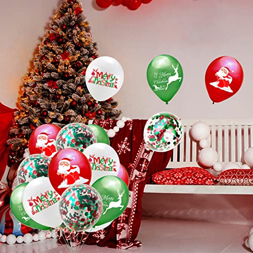 GRESAHOM Palloncini per feste di Natale, 30 cm, bianchi, con stampa di Babbo Natale, verde alce e palloncini in lattice per Natale, Capodanno, feste, decorazioni per feste