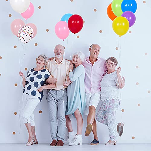 【Set di palloncini in lattice perfetto】 Riceverai uno strumento per legare i palloncini x 2, una catena di palloncini da 16,4 piedi, nastri, coriandoli colorati x 5, 105 palloncini in totale, 10 pezzi di ogni colore contengono bianco, viola, blu, azzurro, verde, giallo, arancione, rosso, rosa, rosa chiaro.