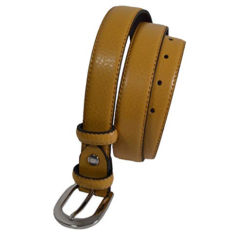 GreSel Cintura da Donna in Vera Pelle, Accorciabile, Altezza 3cm, Con Cuciture Giallo 115 (50-52)