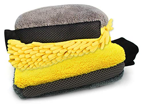 Gresunny 2 Pezzi Guanto Lavaggio Auto Microfibra AntiGraffio Assorbente Guanto per autolavaggio Impermeabile ciniglia Guanti per Pulizia Auto Moto
