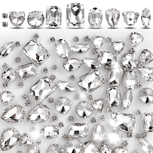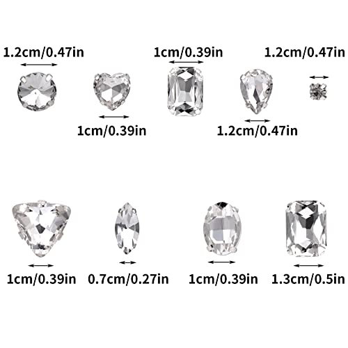 Grevosea 100 Pezzi Di Strass Per Artigianato, Da Cucire Su Strass Varie Forme, Strass Trasparenti in Vetro Da Cucire Su Gemme Di Cristallo Con Artiglio in Argento, Per Gioielli, Artigianato, Scarpe