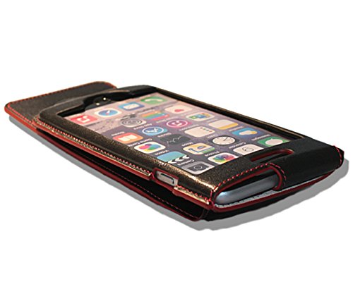 Greyhound safe itTM - Custodia per Apple iPhone 7 & 8, in Vera Pelle, con Chiusura Magnetica e Linguetta di Sicurezza, con Funzione di Protezione e Effetto Ammortizzante, Colore: Nero/Rosso