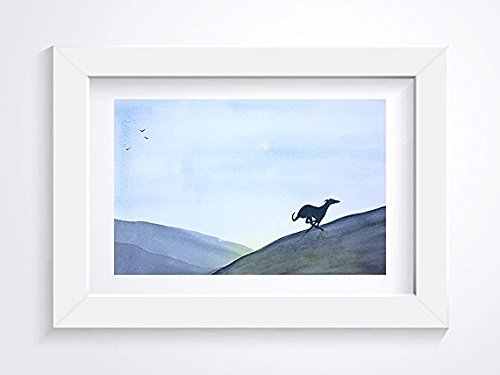 GreyhoundArt - Stampa artistica, tema: levriero / segugio, formato A4, con supporto, misure: 27,94 x 35,56 cm, motivo: correre liberi