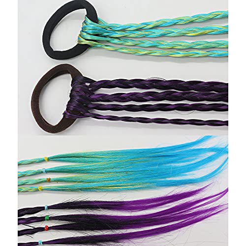 Greyoe Estensioni dei capelli per bambini, Extension Capelli per Bambine, 8 pezzi di capelli intrecciati con fascia elastica in corda per feste di compleanno per ragazze e donne (multicolore)