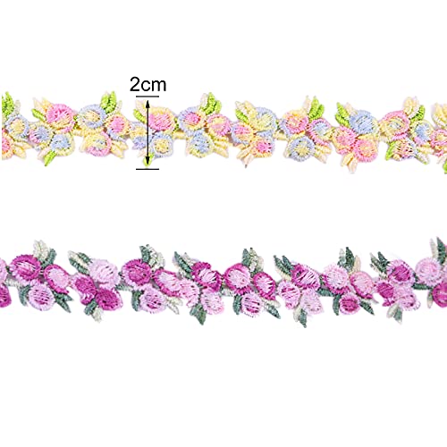 Greyoe Nastro in pizzo, 2 pezzi di pizzo floreale decorazione pizzo 2 cm di larghezza ricamo rosa con 2 colori per la decorazione artigianale cucito fai da te