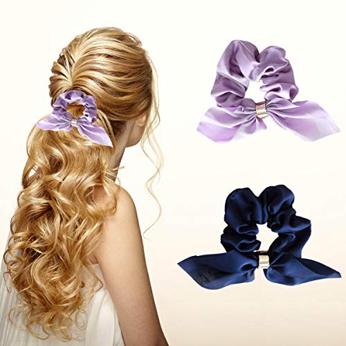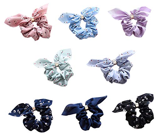 Greyoe 8 Pezzi scrunchies elastici per capelli fasce elastiche per capelli con orecchie di coniglio fiocco scrunchies per capelli in chiffon colorati porta coda di cavallo per donne o ragazze