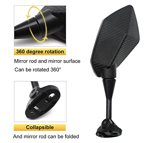DESIGN DI ROTAZIONE A 360 ° - Rotazione a 360 ° tra la superficie dello specchio dello specchietto retrovisore della moto e lasta dello specchio, è possibile regolare la posizione desiderata in base alle proprie esigenze, il che è molto intuitivo.