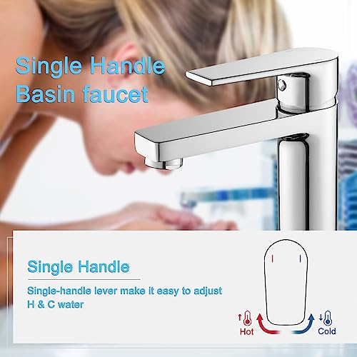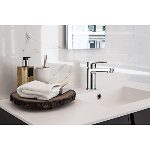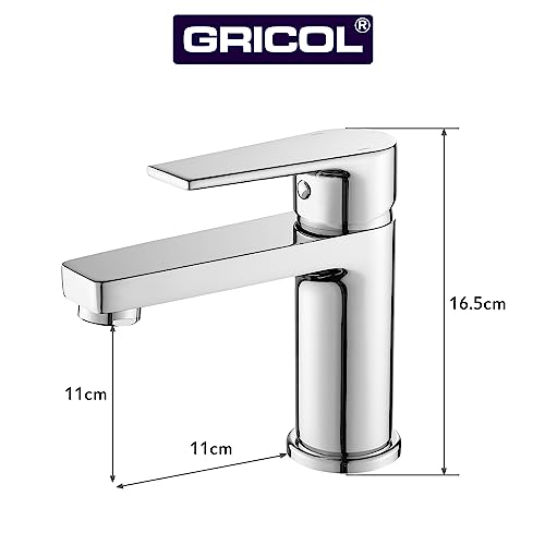 Gricol Rubinetto per Lavabo da Bagno con Maniglia Quadrata in Ottone Miscelatore a Freddo e Caldo con Monocomando Cromo Argento