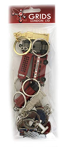 Grids - 10 mini portachiavi con ciondoli riproduzioni delle icone rappresentative di Londra e Regno Unito