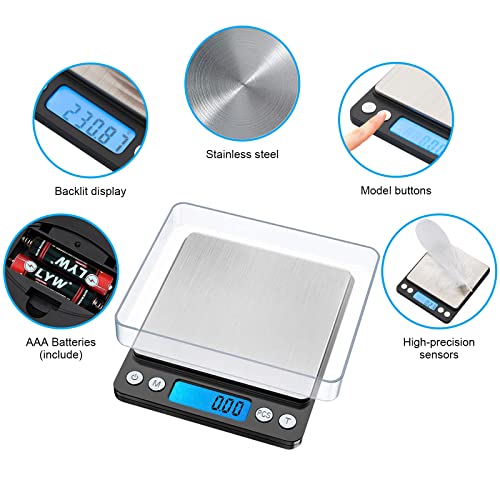 【Bilancia di precisione】: è costituito da sensori ad alta precisione e pesa con precisione da 0,01 a 500 g. È una scelta ideale per cucine, uffici, farmacie, caffè e altri luoghi.