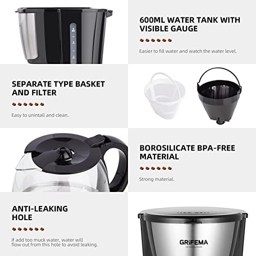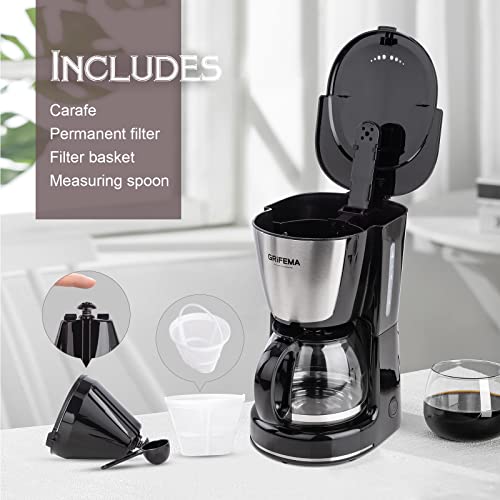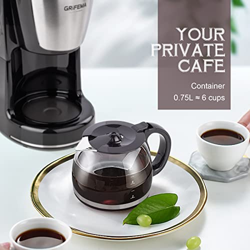 GRIFEMA GC3001 Caffettiera a Goccia 0,75L (6 Tazze), Caffettiera da 550 W, con Filtro Riutilizzabile, con Spegnimento Automatico e Funzione Mantieni Caldo, Sistema Antigoccia, Nero