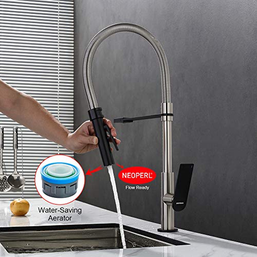 GRIFEMA LYON-G14001 Rubinetto Cucina con Bocca Molto Alta (59CM), Miscelatore Cucina con Doccetta Estraibile Professionale (G3/8 Pollici), Modalità spray a due funzioni, Nichel spazzolato/Nero