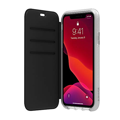 Griffin Survivor - Custodia a portafoglio trasparente per Apple iPhone 11 (6.1"), compatibile con Qi, con scomparti per carte di credito, angoli ammortizzanti, colore: Nero/Trasparente