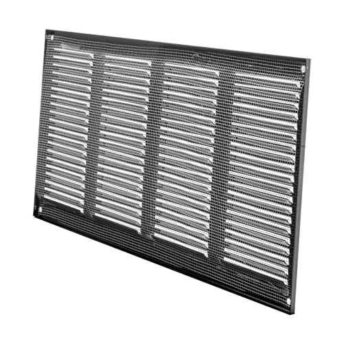 40 x 20 cm Griglia d'aria in acciaio per il ritorno dell'aria, ideale per soffitto e parete laterale, HVAC, con schermo anti-insetti (400 x 200 mm, nero)