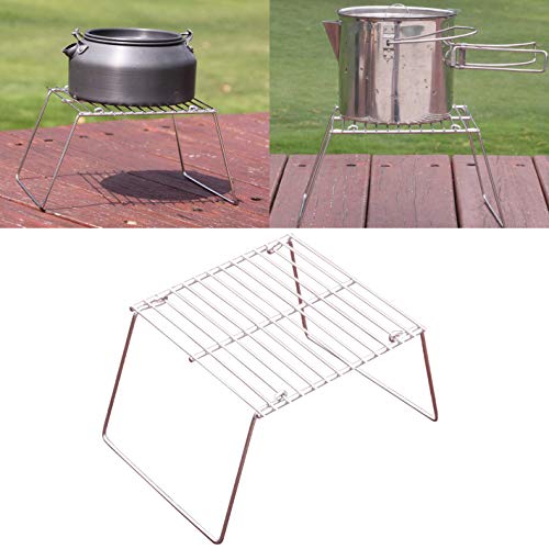 Griglia da campeggio pieghevole, portatile da campeggio compatto, supporto per griglia da esterno, supporto per pentole da cucina, per escursioni, picnic, pesca (argento)