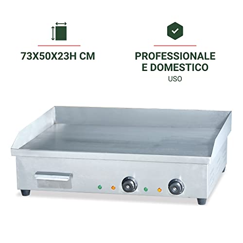 Fry Top Griglia Elettrico da Banco - Professionale - Acciaio Inox - Piastra liscia - 4,4 kW - 73x50x23h cm