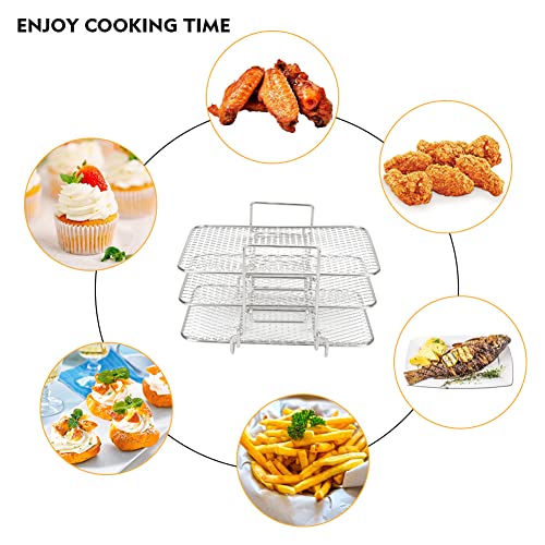 Multiuso: nostri rack per friggitrice ad aria possono essere utilizzati come rack di disidratazione. Il design compatto del rack di disidratazione a 3 livelli consente di utilizzare rapidamente la friggitrice ad aria per preparare vari frutti disidratati o carne secca disidratata.