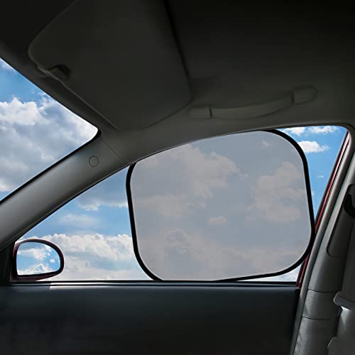La confezione include 5 parasole per auto, 1 pezzo da 100 x 50 cm e 4 pezzi da 44 x 36 cm. Il parasole per auto da 100 x 50 cm può proteggere il lunotto posteriore in un'area più ampia, e le 4 tende per finestre per auto da 44 x 36 cm sono più flessibili per veicoli di diverse dimensioni per finestrini laterali, adatti per la maggior parte delle auto e dei piccoli fuoristrada