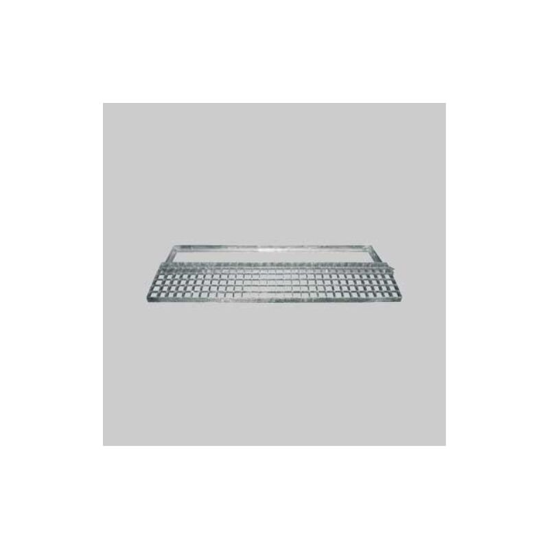 In acciaio zincata a caldo, piatto portante e bordo mm.25x2, piatto di collegamento mm.10x2, maglia mm.33x33. Telaio a 'L' spessore 15/10. Griglia con telaio rettangolare 100x30 cm - pedonale Griglie, canaline e chiusini in acciaio