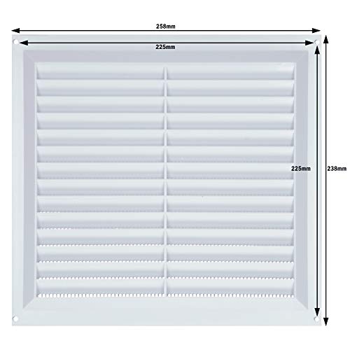 Griglia di ventilazione in PVC bianco 9 x 9 (225 mm x 225 mm) fissa in plastica con zanzariera e copertura del flusso d'aria utilizzata per coprire mattoni, porte, adatto per uso interno ed esterno