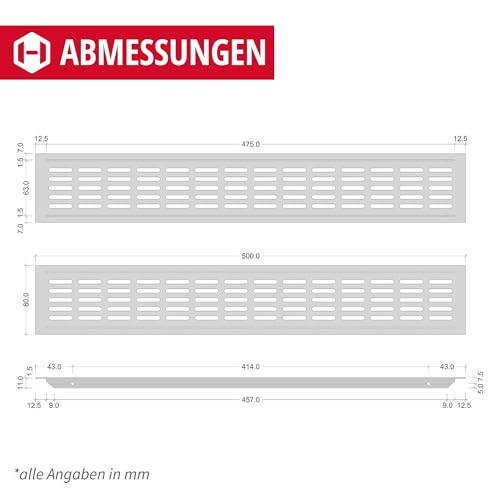 Materiale: alluminio - Materiale massiccio - Superficie: lamiera di ventilazione in alluminio bianco opaco - Dimensioni: 300 x 80 mm - La robusta griglia di ventilazione è adatta per interni ed esterni.
