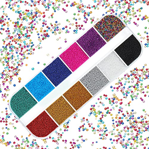 12 Griglie Unghia Micro Pixie Perline Multicolore Piccolo Vetro Strass Elfo Micro Caviale Cristallo Perline per Nail Art DIY Abbellimento Decorazioni