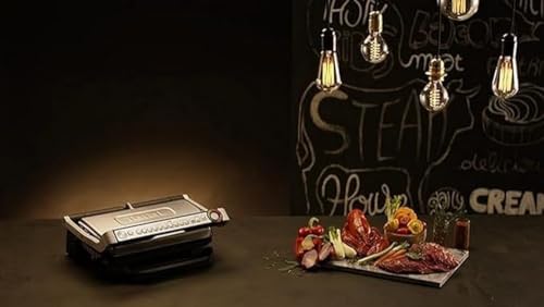 Grill elettrico Tefal GC702D, 2000 W (visualizzazione automatica del livello di cottura, 6 programmi preimpostati, in acciaio inox) nero/argento XL Grillfläche (40 x 20 cm)